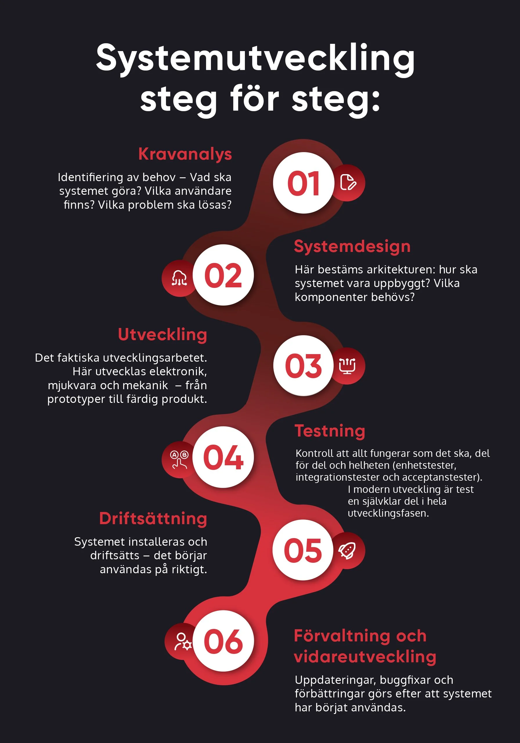 Systemutveckling omfattar hela livscykeln för en produkt eller ett system, från idé och innovation till färdig lösning, förvaltning och funktionsutveckling.